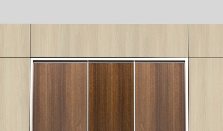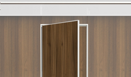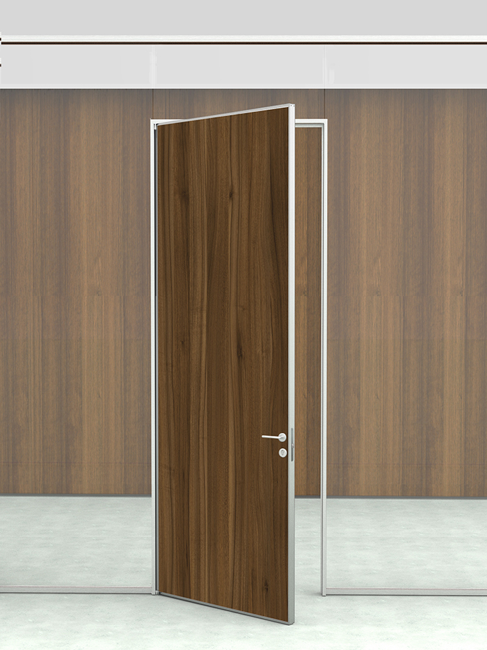 -Porta de uma folha cega de 40 milímetros de espessura em acabamento bilaminado, enverniçado ou madeira natural.