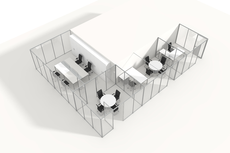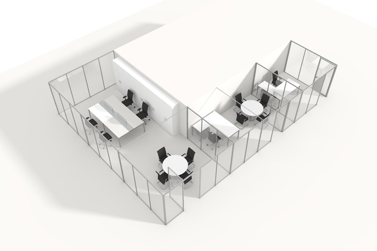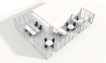 Flat MOVE permite configurar espaços de acordo com as necessidades do momento, compartilhando a mesma linha estética das séries plana FLAT e de remoção fácil mesmo para as equipas de manutenção dos prédios. Transparência e funcionalidade numa divisória modulavel e removível 100%.