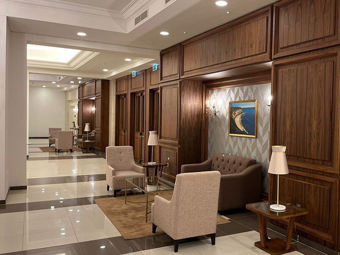 Além do fornecimento e instalação das diferentes gamas de produtos, também trata-se de um projecto de decoração que engloba cortinagem, tapetes, tecidos, iluminação decorativa, etc.