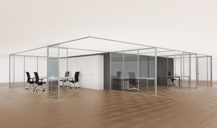 Flat MOVE permite configurar espaços de acordo com as necessidades do momento, compartilhando a mesma linha estética das séries plana FLAT e de remoção fácil mesmo para as equipas de manutenção dos prédios. Transparência e funcionalidade numa divisória modulavel e removível 100%.