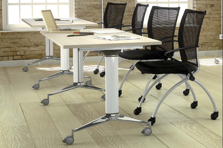 Mesas reclináveis para salas de reuniões e colectividades.