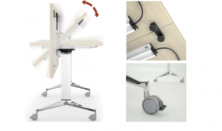 Mesa polivalente de múltiplas possibilidades, graças a sua mobilidade e variedade de formas.