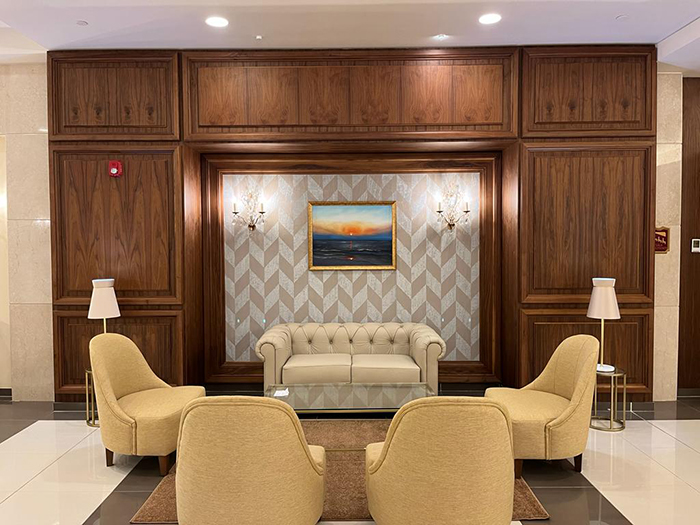 Além do fornecimento e instalação das diferentes gamas de produtos, também trata-se de um projecto de decoração que engloba cortinagem, tapetes, tecidos, iluminação decorativa, etc.